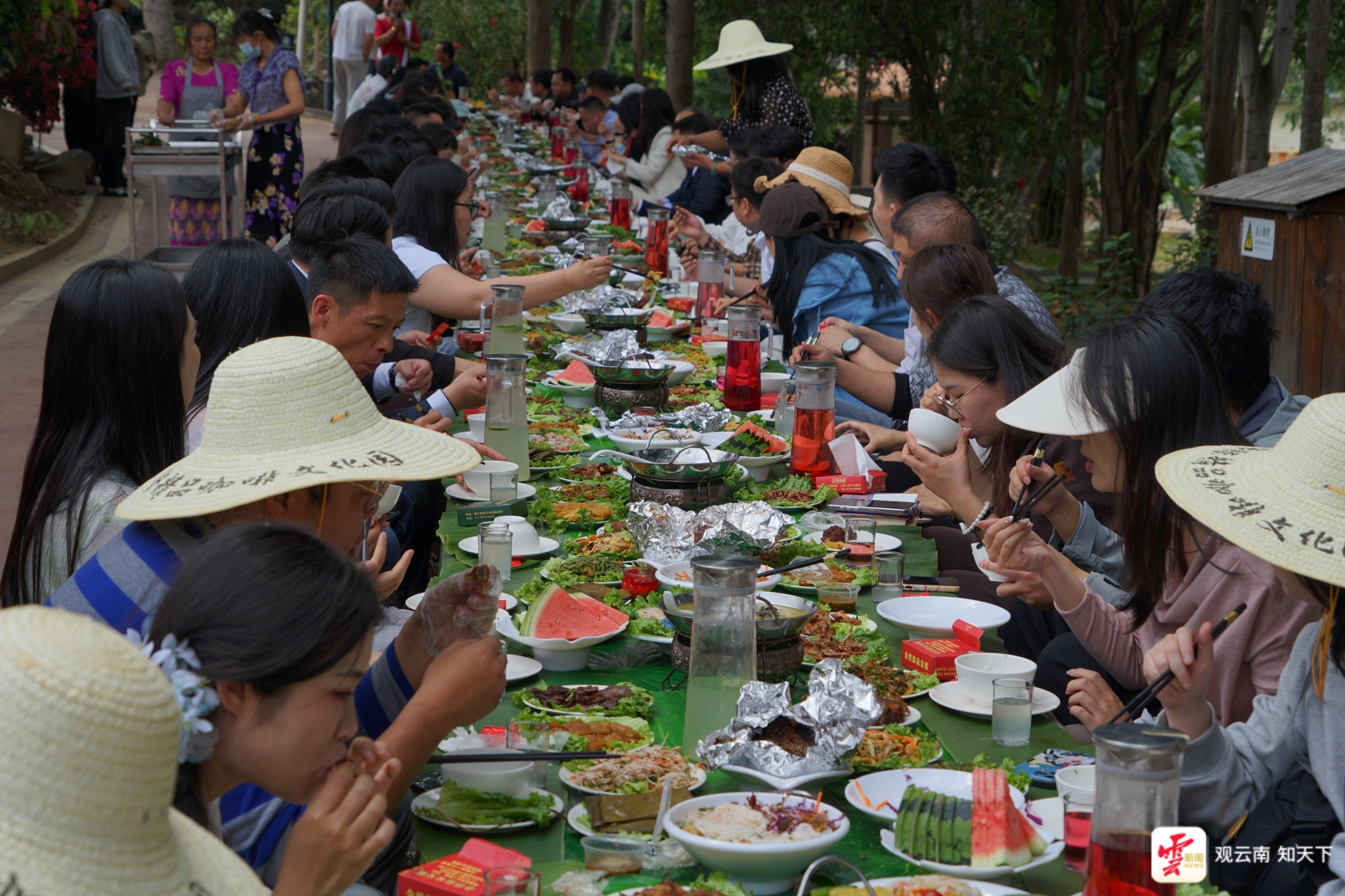 莫卡村内的傣族长桌宴