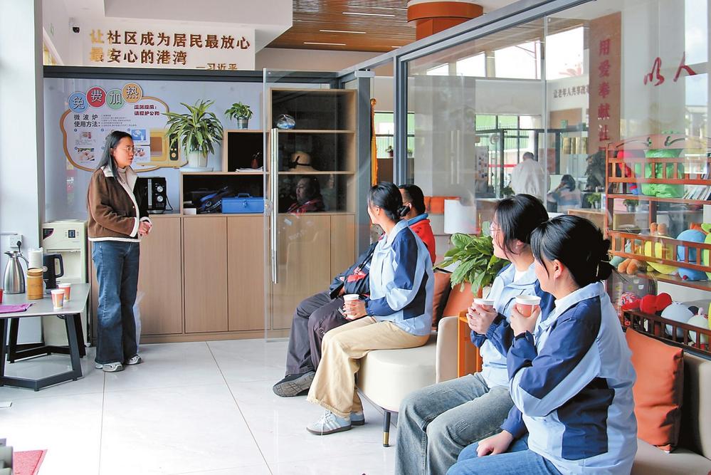 社区工作人员在暖“新”驿站与新就业群体交流。 本报记者 谢蕊灿 摄