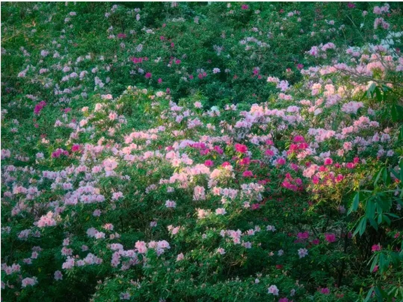 红、粉、紫交织成“醉美龙潭杜鹃展”