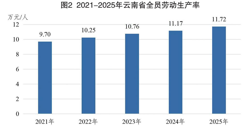 图2 2021—2025年云南省全员劳动生产率