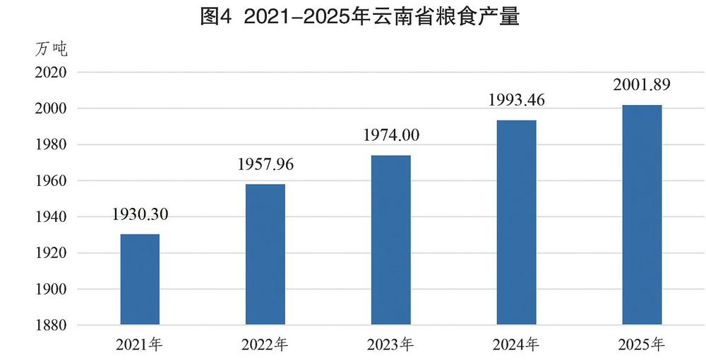 图4 2021—2025年云南省粮食产量