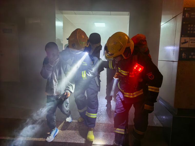 在实践演练环节,活动组织小区居民亲身参与楼道逃生与应急救援模拟演练,演练的烟气让大家直观的感受楼道起火的恐怖场面。随后,在消防指战员的专业指导下,居民们“零距离”学习干粉灭火器操作要领,通过亲身体验掌握初期火灾扑救技能,现场气氛紧张有序,“提拔握压”的细致教学实操让大家面对初期小火更有底气和信心。