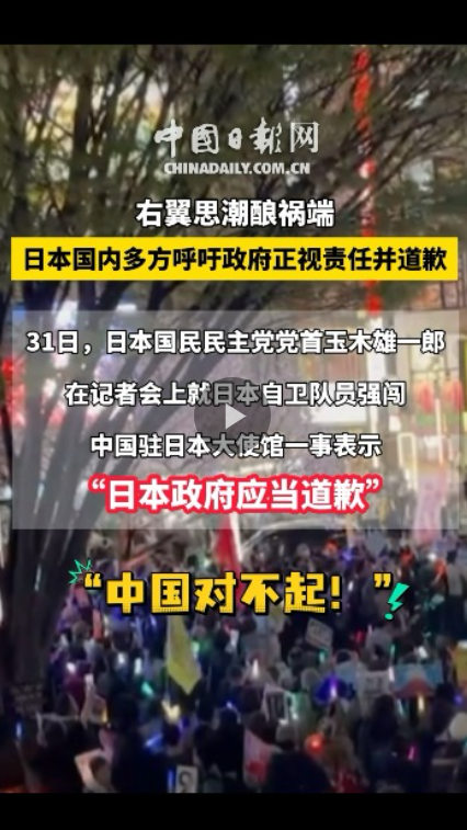 3月31日,日本国民民主党党首玉木雄一郎在记者会上就日本自卫队员强闯中国驻日本大使馆一事表示,日本政府应当道歉。