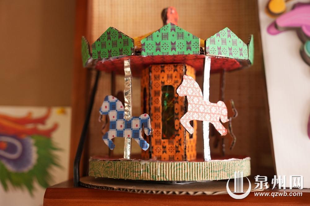 店主根据生肖或季节元素创作新的产品。图为马年的旋转木马作品。