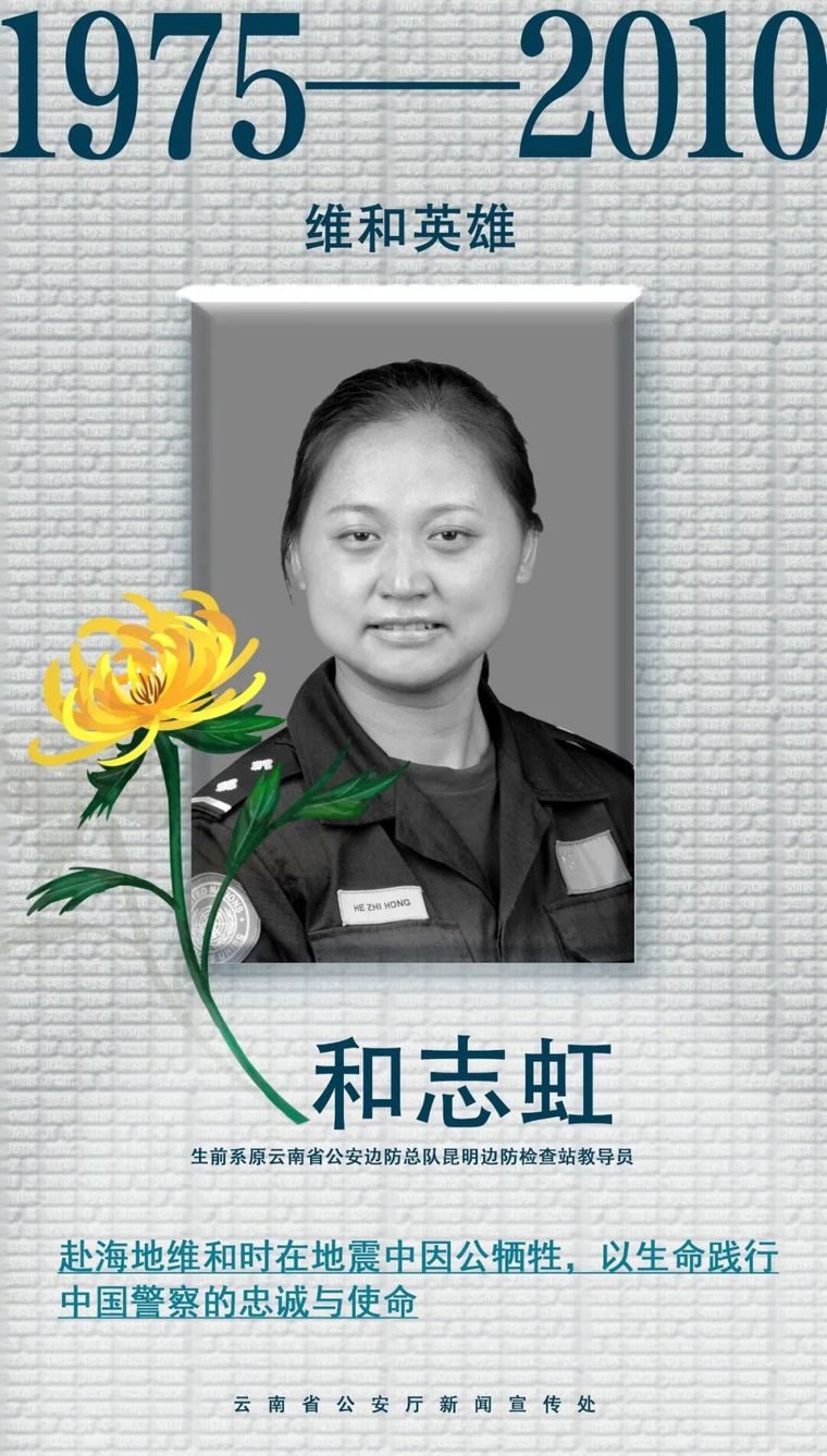 和志虹,原云南省公安边防总队昆明边防检查站教导员,维和英雄。2010 年赴海地维和期间遭遇地震,将生命永远留在维和战场,诠释中国警察的忠诚担当。