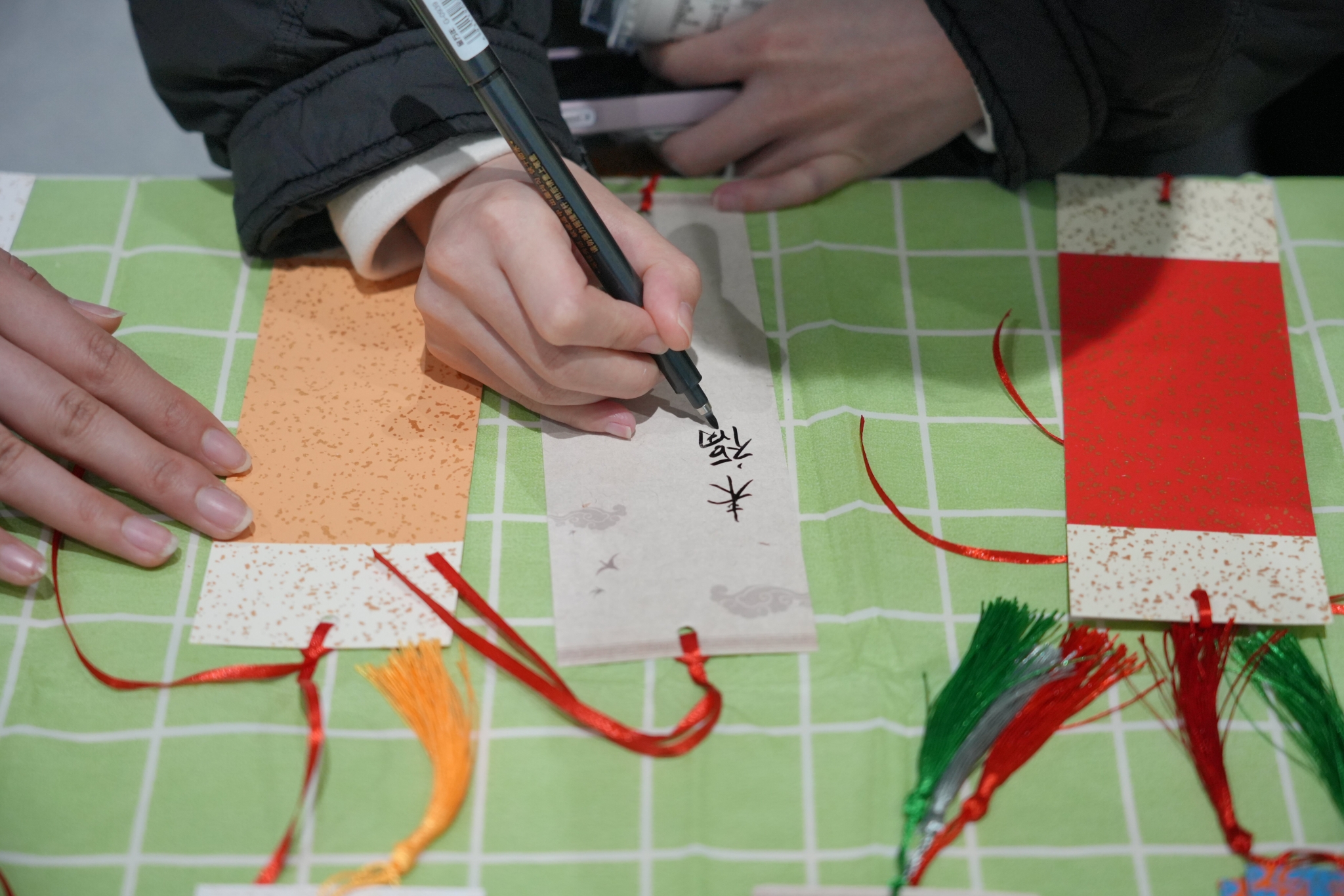 “我对姓氏文化很感兴趣,看到这个活动不由自主就走过来了。现在很多年轻人不了解这些,我觉得在火车站办这样的活动特别有意义。”来自石家庄的旅客吕江浩开心地说。一旁,另一位旅客举起刚做好的杯子和书签展示:“看!这是工作人员送我的国风伴手礼,上面贴了我的专属姓氏贴纸——‘陈’心如意,把姓氏和祝福融在一起,太有创意了!”