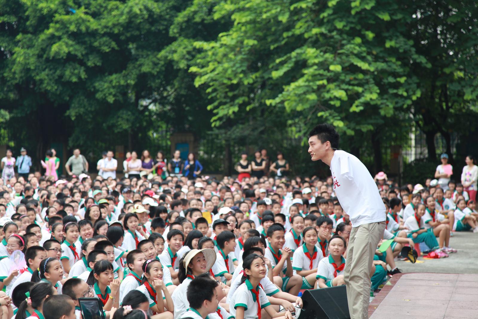 2013年,杨孟衡在广州华景小学开展励志演讲。