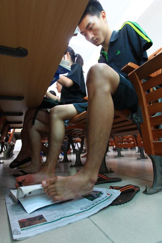 2012年,在大学课堂用脚翻阅课本的杨孟衡。