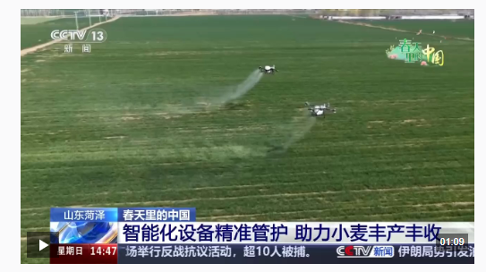 山东菏泽定陶区的65万多亩小麦正值田间管理关键期。当地抢抓农时,推广植保无人机飞防与滴灌水肥一体化技术,以智能装备与精准管护助力小麦提质增效。