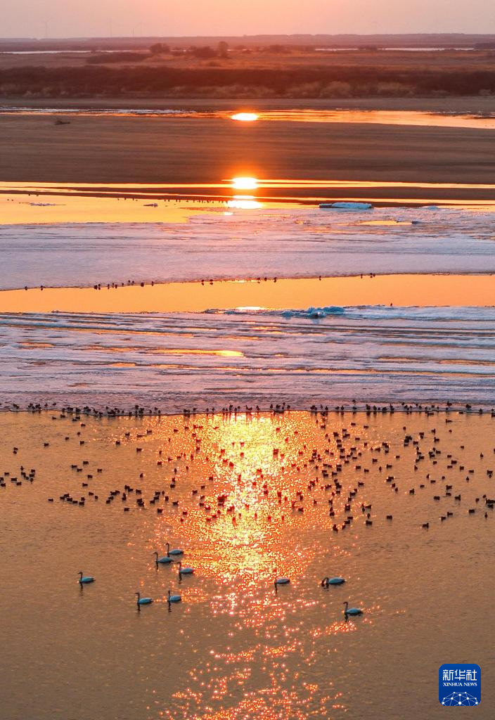 近日,随着气温回升,黑龙江省佳木斯市境内的松花江富锦段冰融水暖,迎来大批北归天鹅。开化的水域成为候鸟的乐园,为春日江畔增添了勃勃生机。