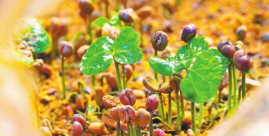 春日清晨,临沧市镇康县哈里咖啡良种繁育核心基地里,20余名工人分工协作,疏土、整地、套袋、架模……一排排营养袋整齐排列,静待咖啡新苗移栽。“我们苗圃育有7个品种,今年计划育苗800万株,目前已全部完成,正准备移栽。”基地负责人唐大和边介绍情况边细心观察长势。该基地是云南镇康哈里咖啡庄园有限责任公司的核心育苗基地,占地170亩,年繁育优质种苗800万株,可满足3万至4万亩咖啡园品种改良需求。作为镇康县招商引资重点企业,该公司构建“种植+初精加工+文旅+直播销售”全产业链,打造“企业+村集体+农户”利益共同体,2025年线上销售额超1600万元,基地年产值达1.4亿元,有力带动了村民增收。(云南日报 通讯员李建军 徐杰 文/图)