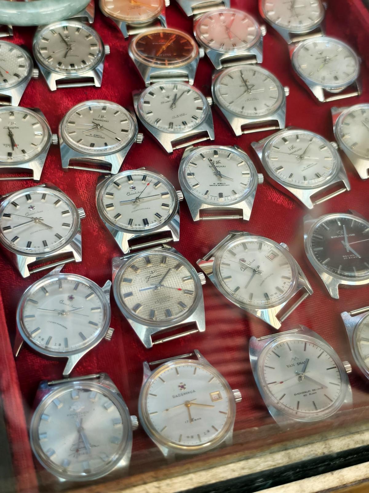 陆师傅曾在昆明百货公司工作,过去曾是人人羡慕的岗位。交谈间,他向记者展示着自己多年珍藏:上百块各式老钟表,其中包括几块品相完好的金表,以及数只拥有百年历史的国外老怀表,工艺精致、保存完好。经询问得知,如今这批表价值数万元。