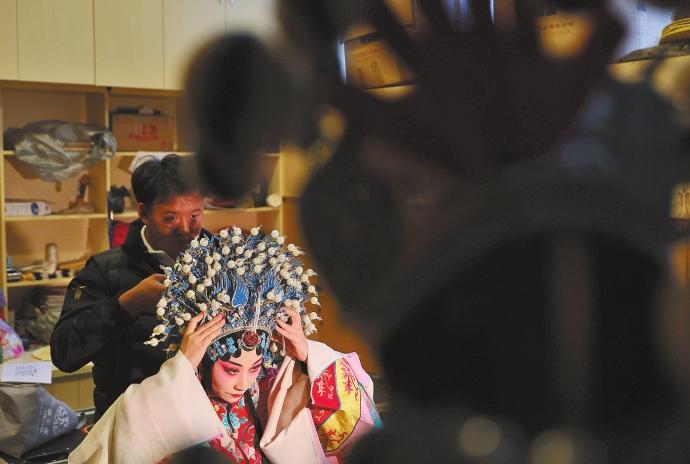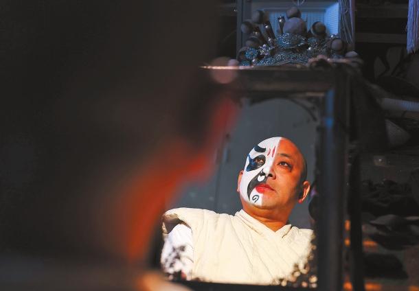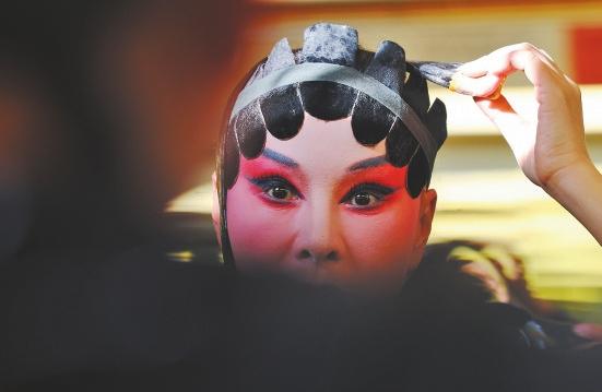 化妆是每位滇剧演员的必修课。