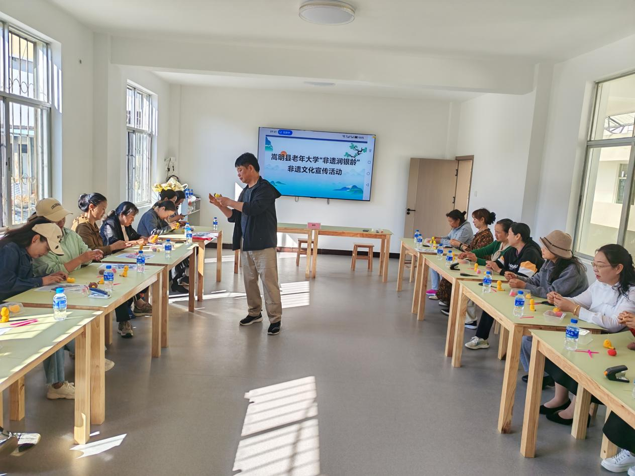 为传承弘扬中华优秀传统文化,推动老年教育资源向基层延伸、向社区覆盖,近日,嵩明县老年大学联合兰茂社区开展“非遗润银龄 乐学在社区”主题活动,以非遗文化为纽带,搭建老年群体精神文化服务新平台,让银发生活绽放文化光彩。