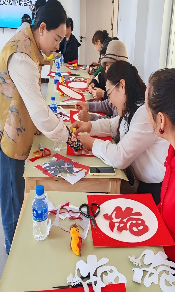 县老年大学面塑班、剪纸班的教师们现场演示非遗技艺,从面塑的造型塑造到剪纸的线条勾勒,细致讲解传统技艺的历史渊源与创作技巧,带领社区老年朋友沉浸式感受非遗之美。在一捏一剪、一笔一画中,亲手创作属于自己的非遗作品,在实践中触摸传统文化的温度,在互动中收获动手的乐趣与邻里的温情。