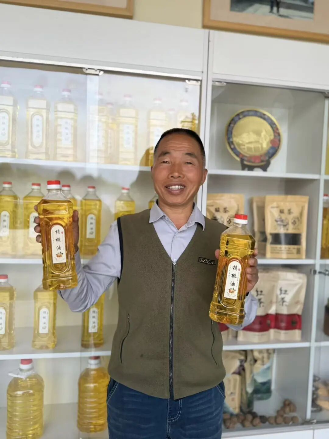 正当他苦思冥想时,一位老战友给他出了个主意:“鲜核桃卖不上价,不如搞加工,炸核桃油,附加值高,也好保存。”彭武元一听,觉得在理。他拿出积蓄,建起核桃加工作坊,开始尝试炸核桃油。可做着做着他发现,单一产品效益有限,市场也不够广。就在这时,村里的党员曾刘近等人正尝试研发核桃宴,试图通过深加工为核桃找出路。彭武元眼前一亮——这青皮小核桃里,藏着大文章。于是,他从“炸油”转向“做宴”,走上了另一条更有烟火气的路。