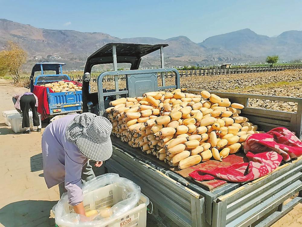 “三川莲藕品质好,我在这里收购多年了,每天发往丽江市区就有10余吨。”收购商李炳林一边指挥装车一边说道。