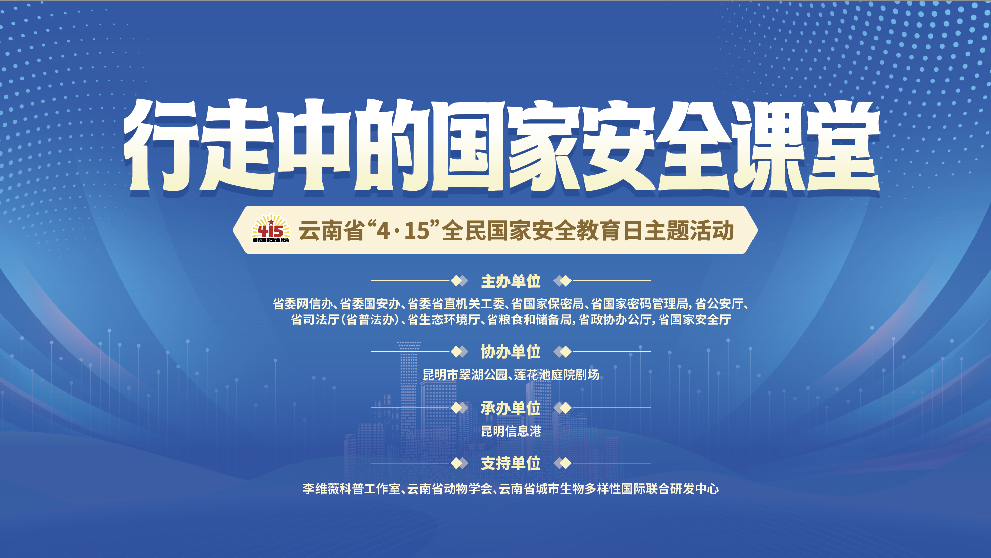 4月15日是全民国家安全教育日,今年云南换个方式学,把国家安全教育搬进风景里,融入人民群众的日常生活中!4月15日,省委网信办、省委国安办、省委省直机关工委、省国家保密局、省国家密码管理局,省公安厅、省司法厅(省普法办)、省生态环境厅、省粮食和储备局,省政协办公厅,省国家安全厅多部门联合,将在昆明翠湖公园打造“行走中的国家安全课堂”。