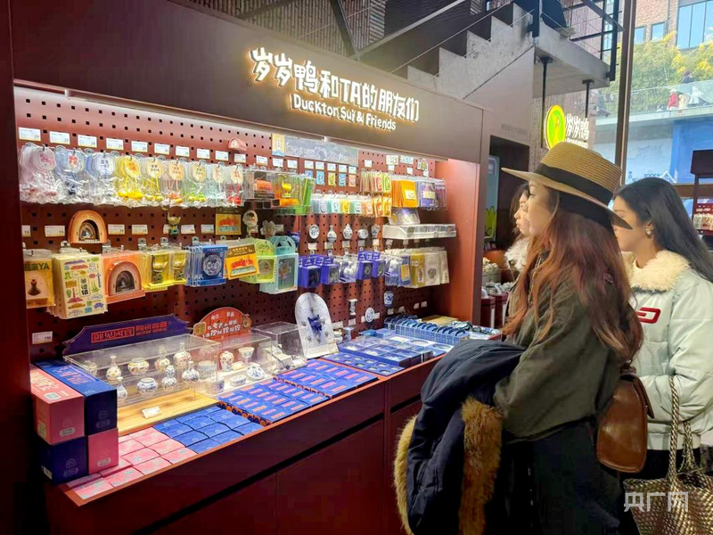 游客正在选购“岁岁鸭”相关文创产品(央广网记者 胡斐 摄)