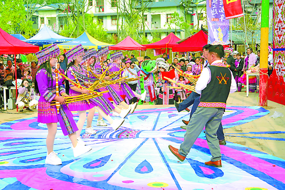 龙泉社区举行苗族花山节活动,各族群众载歌载舞。 蒙自市融媒体中心供图