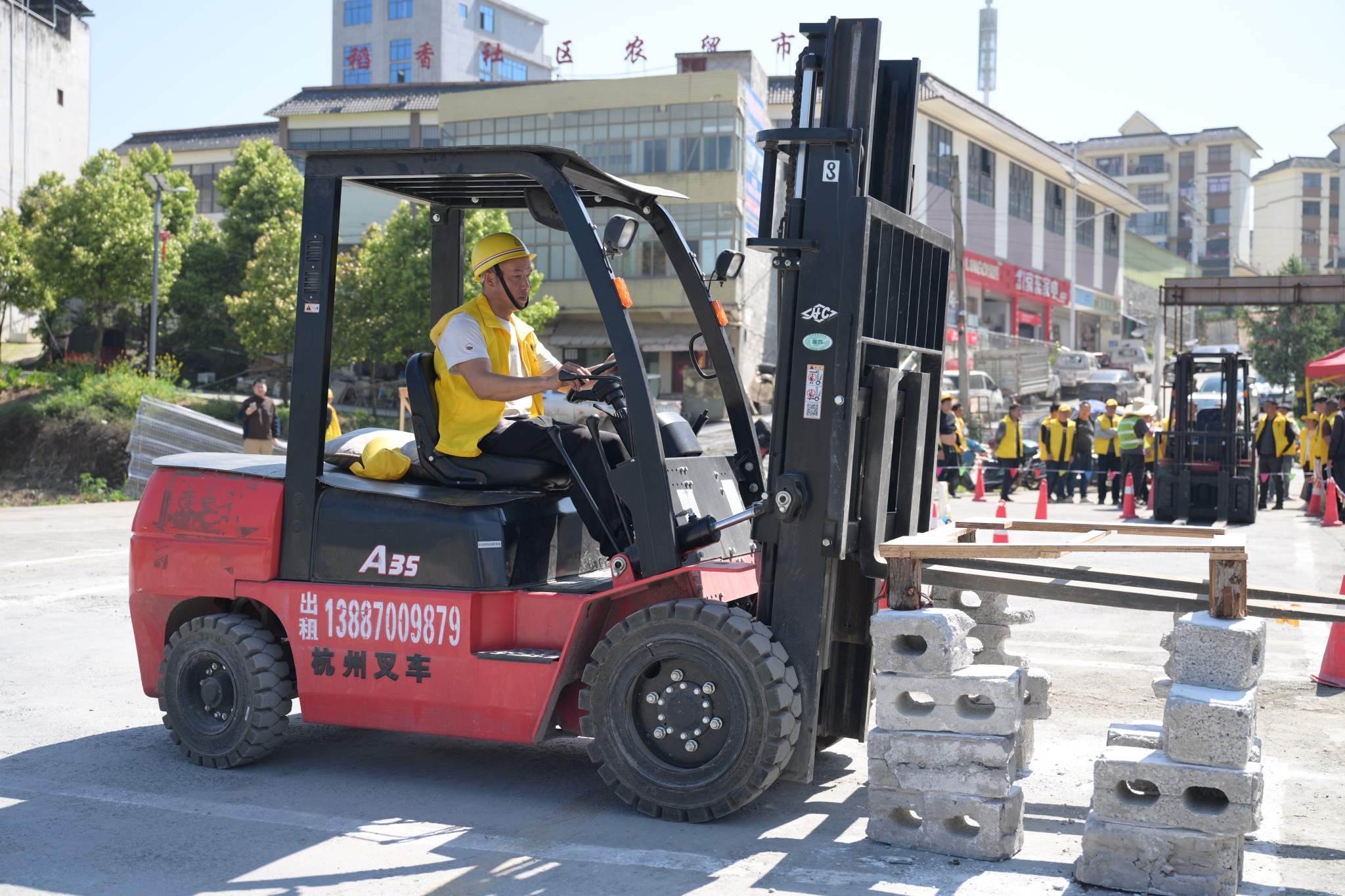 培训现场机械轰鸣,参训学员在专业教练的规范指导下,正全神贯注地练习叉车前进后退、货叉升降、精准叉货等实操技能,从基础操作规范到安全作业流程,一步步扎实掌握叉车驾驶核心技能。
