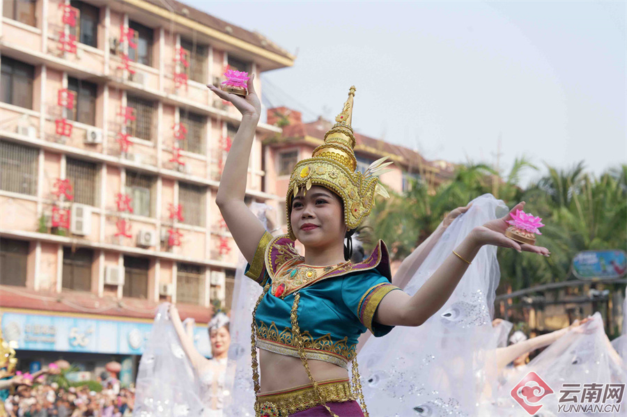 花车与彩伞在阳光下流光溢彩,欢快的鼓点与舞步沿街铺展……4月14日,西双版纳傣族自治州傣历1388年新年节(2026年泼水节)民族民间文化大游演在景洪市精彩上演,一场沉浸式的“City walk”点燃全城节日氛围。