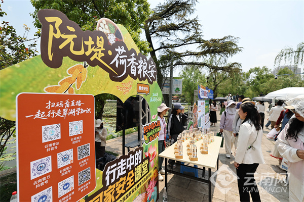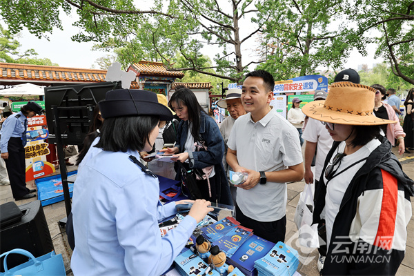 在阮堤,“阮元劝农”情景讲堂吸引了不少市民围观。身着清代服饰的演员以历史人物阮元为线索,讲述云南农耕发展与现代粮食安全的关系。不少市民在这里体验“五谷辨识挑战”,通过亲手触摸稻、黍、稷、麦、菽,感受“中国人的饭碗要牢牢端在自己手中”的深意;在唐堤,生态环境保护工作人员和志愿者结合翠湖鸟类资源,向群众讲解生物多样性保护、外来物种入侵防范等知识;在中心区,灯谜、汉服礼仪、非遗体验等活动吸引许多市民驻足参与,大家在轻松互动中了解文化安全相关内容;在观鱼楼,市民不仅要利用磁吸鱼竿精准钓出“AI换脸”“杀猪盘”等反诈纸鱼,还要在日常用品中找出隐藏的“窃听器”,气氛紧张刺激;九曲桥围绕网络安全与密码安全设置“九曲寻真”闯关体验,把钓鱼链接识别、弱密码风险、Wi-Fi陷阱、隐私保护、谣言甄别等常见网络风险融入关卡任务,同时设置摩斯密码寻宝等互动,让群众在解密与打卡中学习密码安全知识。