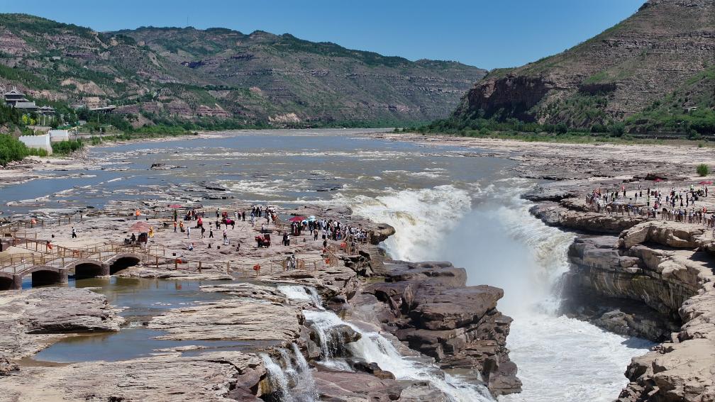 延安古来缺水,人们便把对水的渴望写进地名:延川、宜川、洛川……在壶口,宽阔的黄河河道至此骤然收窄,奔涌的河水倾泻而下,“千里黄河一壶收”的壮丽景观,孕育出《黄河大合唱》的澎湃激情。