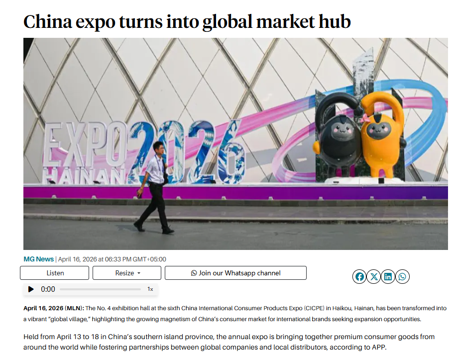 文章最后援引专家的话说,中国的消费趋势正在发生转变,对更智能、更绿色、更优质产品的需求日益增长。消博会在连接全球供应商与中国不断扩大的消费群体方面正发挥着重要作用。