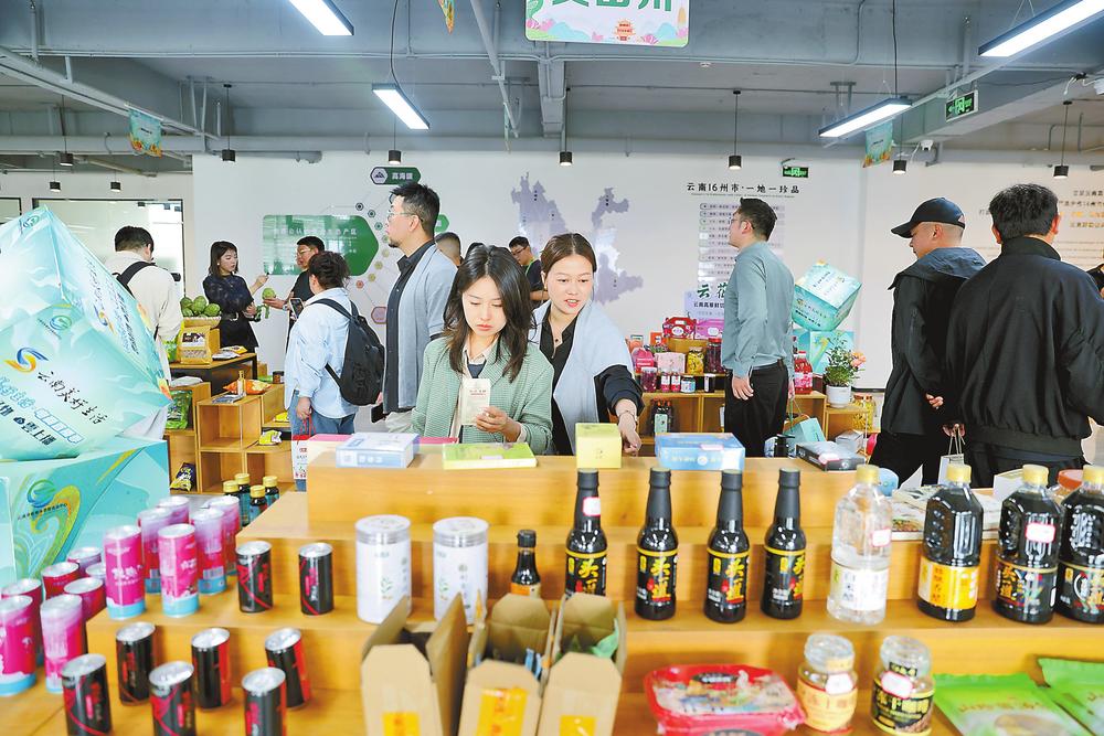 主播在活动现场推介云南高原特色农副产品。本报记者 高吴双 摄