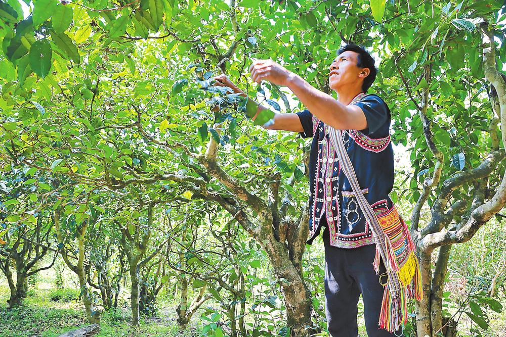 南美村村民罗光兴管护古茶园。