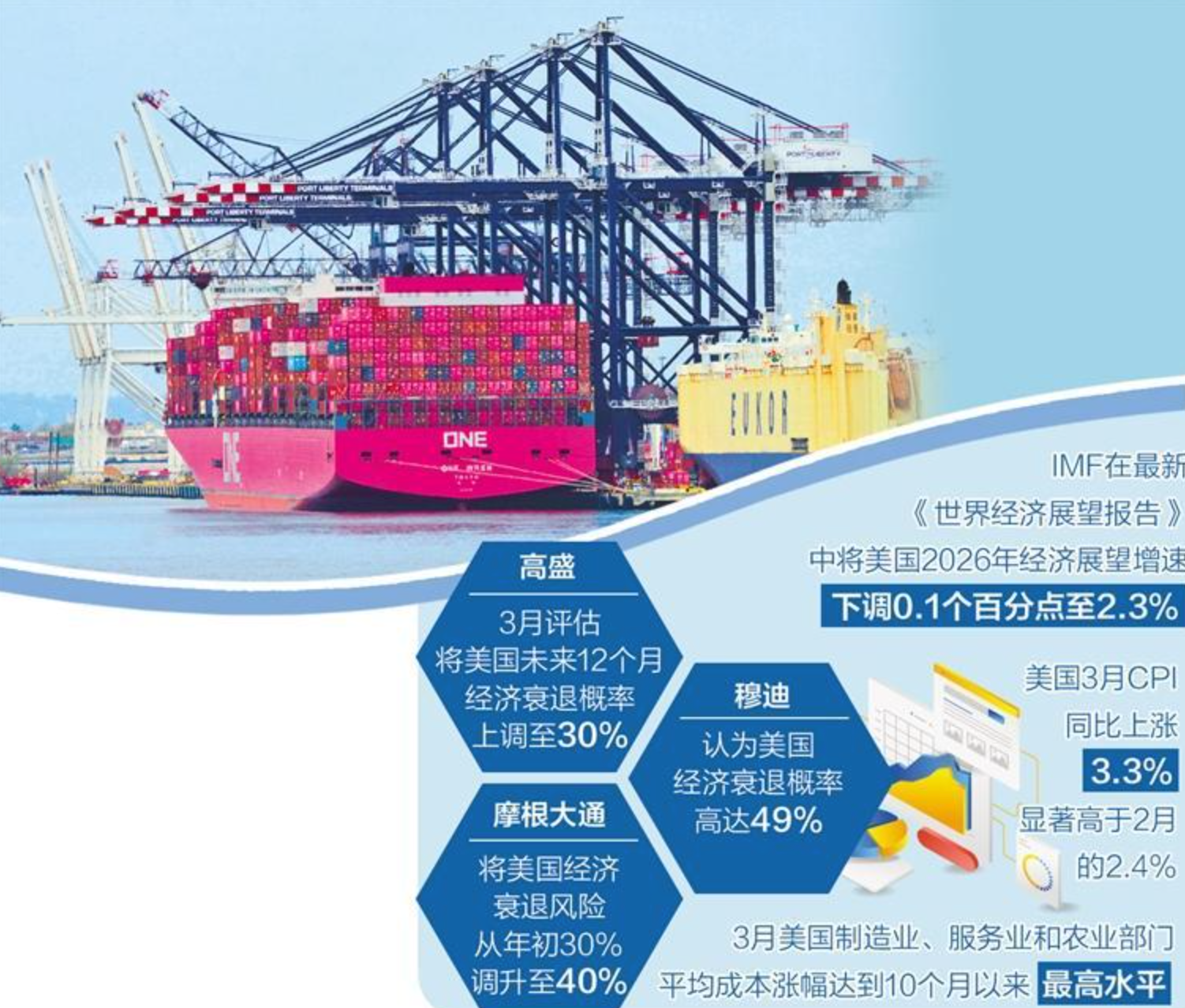 在经济增长预期方面,美国官方部门的立场与市场机构态度存在显著的“温差”。从各大机构研究情况看,美以伊战事加剧了全球能源体系价格波动和供应链受阻,同步对美国国内油价和供应链造成反噬,冲击其经济增长动能。