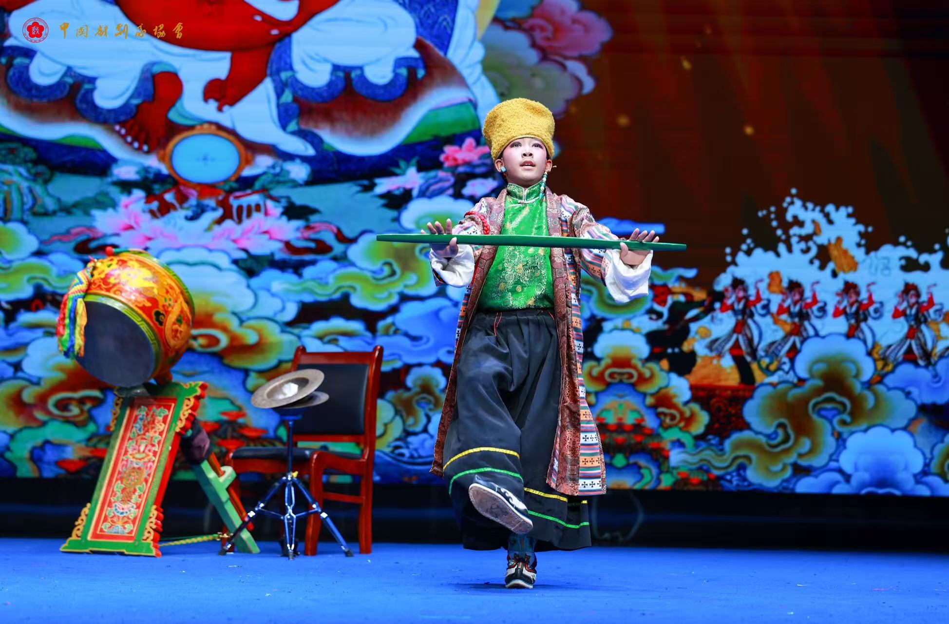 在众多技艺中,藏戏司鼓的鼓艺是他的突出特长。藏戏演出中,击鼓人既要掌控全场节奏,又要用鼓点传递情绪。单增班旦已能熟练完成开场击鼓,并边击鼓边演唱。凭借“鼓艺与唱腔双优”的能力,他成为西藏戏剧家协会牵头组建的“藏戏少儿精英班”中,极少数能同时胜任藏戏司鼓击鼓伴奏与主演演唱双重角色的学生。