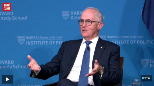 当地时间4月17日,澳大利亚前总理马尔科姆·特恩布尔在哈佛大学肯尼迪学院出席活动。