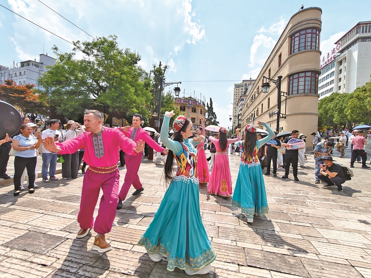 当天,主题路演活动同步走进昆明老街。欢快的龟兹歌舞、特色的文旅项目展示吸引大批市民游客围观打卡。(都市时报 全媒体记者杨丽菊)