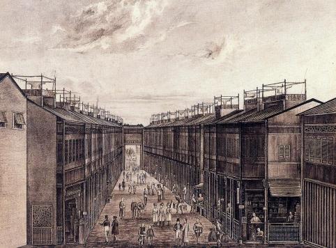 清代外销画之广州十三行靖远街。资料图