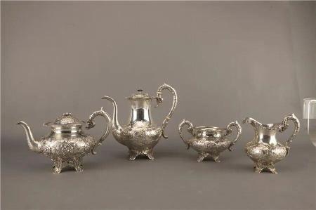 “新文艺复兴风格”银錾花卉纹咖啡壶(左二)图/广东省博物馆