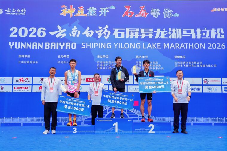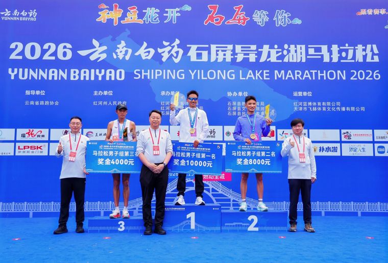 4月19日,“神豆花开 石屏等你”2026云南白药石屏异龙湖马拉松在云南省红河州石屏县异龙湖畔鸣枪开跑。6000名来自全国各地的跑者齐聚“状元故里”,在被誉为“中国最美高原湖泊专用赛道”的绿道上竞速驰骋,生动演绎了一场体育竞技与绿水青山完美交融的春日交响。