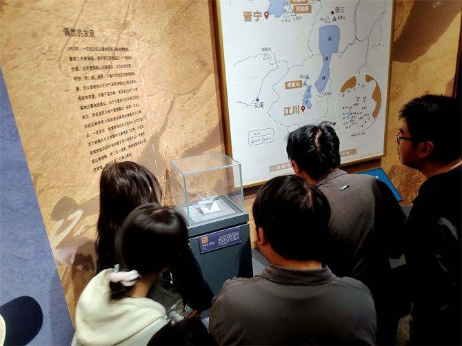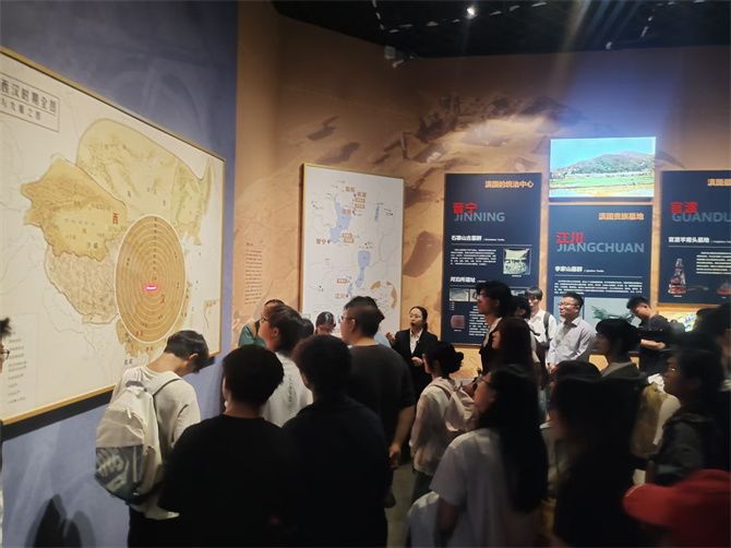 在滇王之印复仿制品展柜前,同学们停留了很久。这枚金印的出土,与《史记·西南夷列传》中“赐滇王王印,复长其民”的记载完美呼应,实证了公元前109年汉武帝设置益州郡、将滇池地区纳入中央行政体系的历史。更值得一提的是,它与2019年河泊所遗址出土的滇国相印封泥一起揭示,汉武帝在推行郡县制的同时,还创设了滇相进行直接治理,采取了因俗而治与直接管理相结合的灵活策略。这一政治智慧,生动体现了中央王朝治理边疆的艺术,也成为我们统一多民族国家形成与发展早期的关键物证。