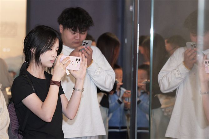 同学们对感兴趣的文物进行拍照。供图