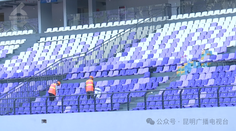 8099999记者 肖雨迪:“我现在就在拓东体育场内,目前场馆草皮,跑道铺设有条不紊的进行中,可以满足国际综合赛事需求,一大亮点就是蓝花楹主题看台与赤红色的体育场相得益彰,凸显大气不失灵动而时尚。”