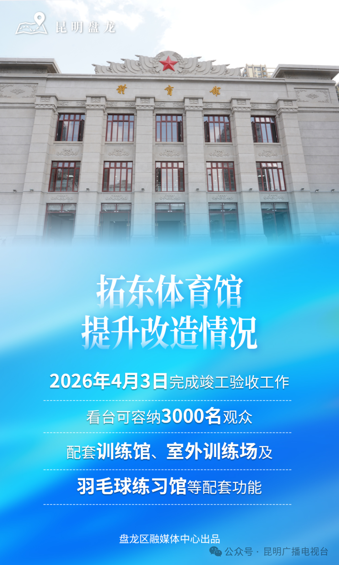 日前,相关部门发布了拓东体育场、体育馆焕新开放情况的公告,内容显示,拓东体育场:6月一7月场馆试运行、功能测试,除8月8日、10月28日以外均接受活动场地预约。体育馆预计7月30日开放,8月一12月均接受活动场地预约。活动支持范围包括体育赛事活动、商业赛事、演唱会、音乐会、明星见面会、会展、招商推介及企业年会等活动。