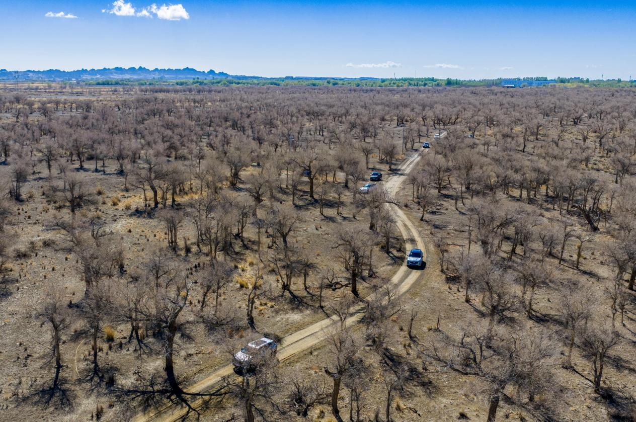 4月18日,克拉玛依市乌尔禾区乌尔禾镇万亩胡杨林,媒体试驾活动在林中举行。闵勇摄
