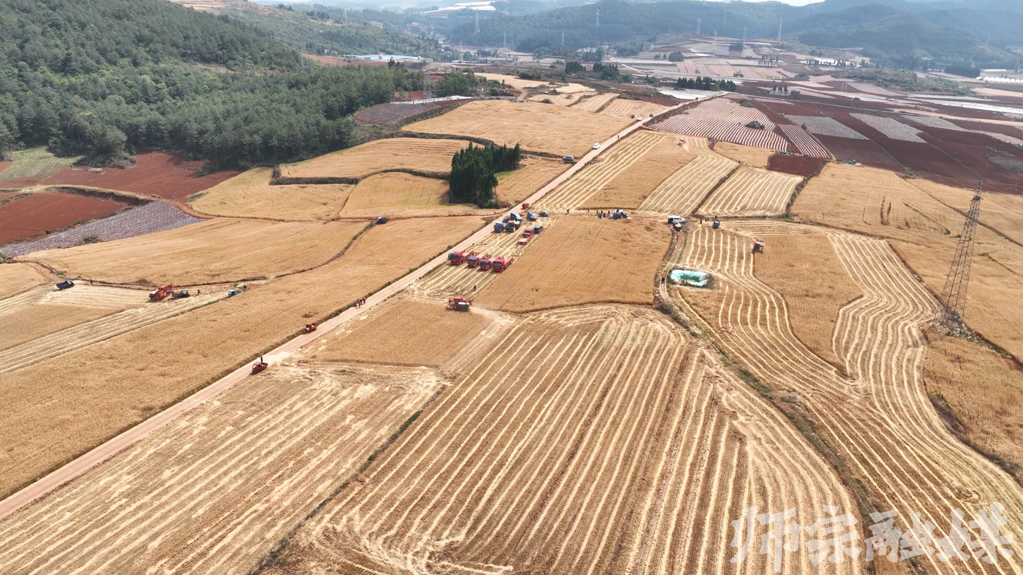 连日来,师宗县广袤的田野上麦浪翻滚,金黄的麦穗在阳光下熠熠生辉,田间地头收割机轰鸣,一幅丰收画卷徐徐展开,目前已完成小麦收割近九成。