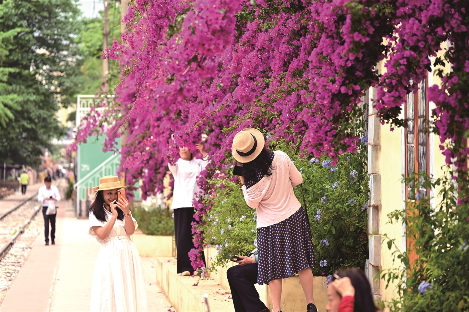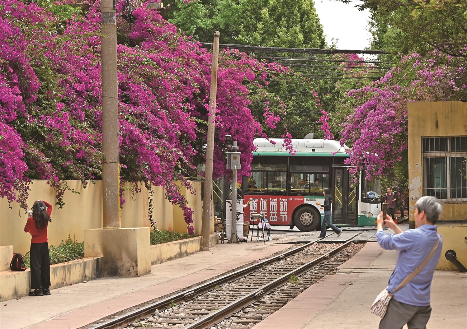 多彩的三角梅,配着标志性的“昆明蓝”,共同绘出一幅色彩明艳的画面,美得让人觉得有些不真实。这段曾经不同寻常又险些被昆明人遗忘的米轨铁路,正以一种特别的方式重新回到人们视线中——正所谓:你若盛开,蜂蝶自来。(都市时报 全媒体记者彭德光)