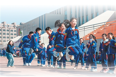 内蒙古呼和浩特市南马路小学的师生在课间活动。丁根厚摄