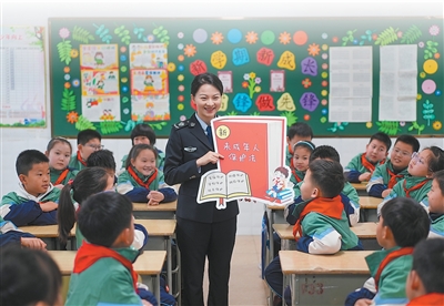浙江金华市婺城区人民检察院检察官在辖区小学开展法治宣传教育。金思成摄