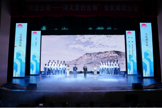 4月23日,“阅读云南——诗文里的云南”全民阅读大会在昆明市工人文化宫剧场成功举办,吸引职工、中小学生、社区居民450名观众到场观看。