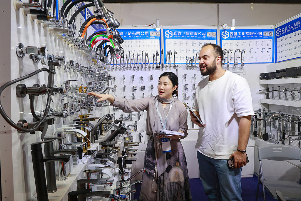 4月20日,外商在第10届中国义乌国际五金电器博览会上采购配件。