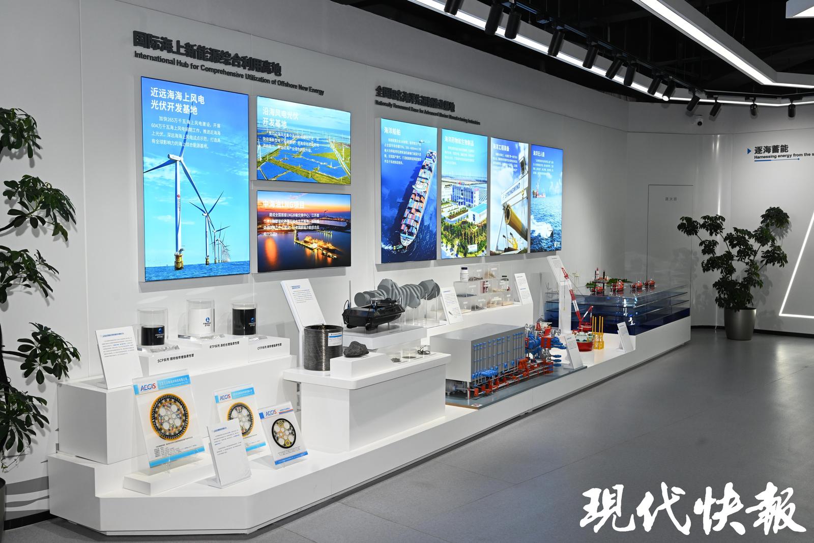 作为此次参观的重点,盐城绿色低碳发展示范区会客厅,总面积约3500平方米,按照“可感知、可体验、可焕新”的设计理念打造。媒体嘉宾依次参观了“逐绿向新、赋能向新、拓海向新、兴农向新、聚势向新”五大板块,全方位感受到盐城在风、光、氢、储、智、海、农七大领域培育新质生产力的禀赋优势、工作成果和发展方向。